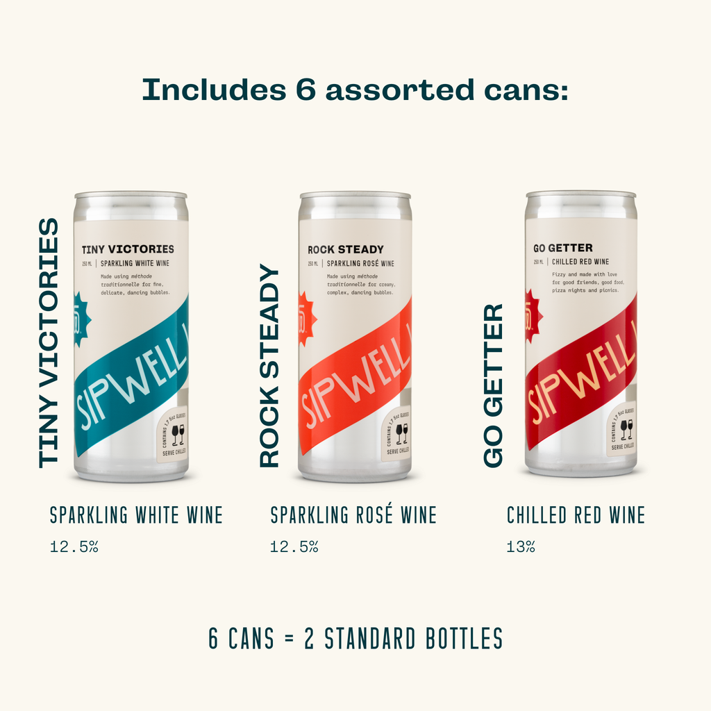 Each 250mL can is the equivalent of 1.5 standard glasses of wine, or 1/3 of a bottle.