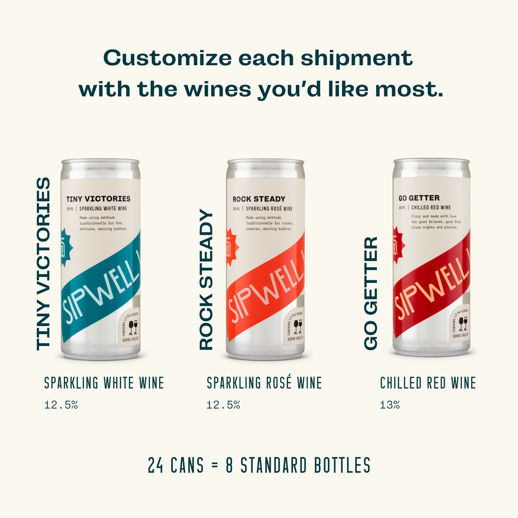 Ready to level up your canned wine experience? The Inner Circle is our premium subscription tier—designed for true Sipwell insiders. You’ll get 24 cans of customizable wine each quarter, plus priority perks, deeper discounts, and special surprises along the way.